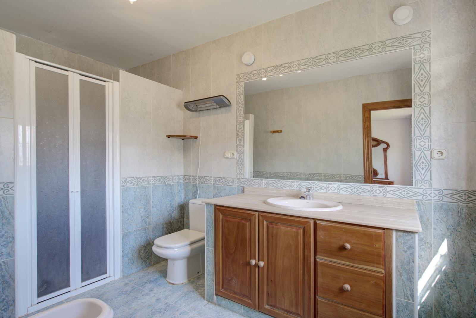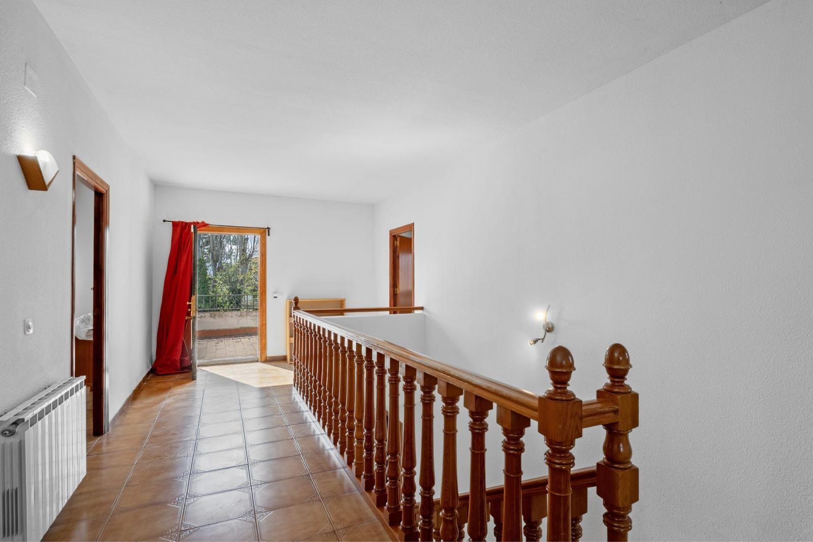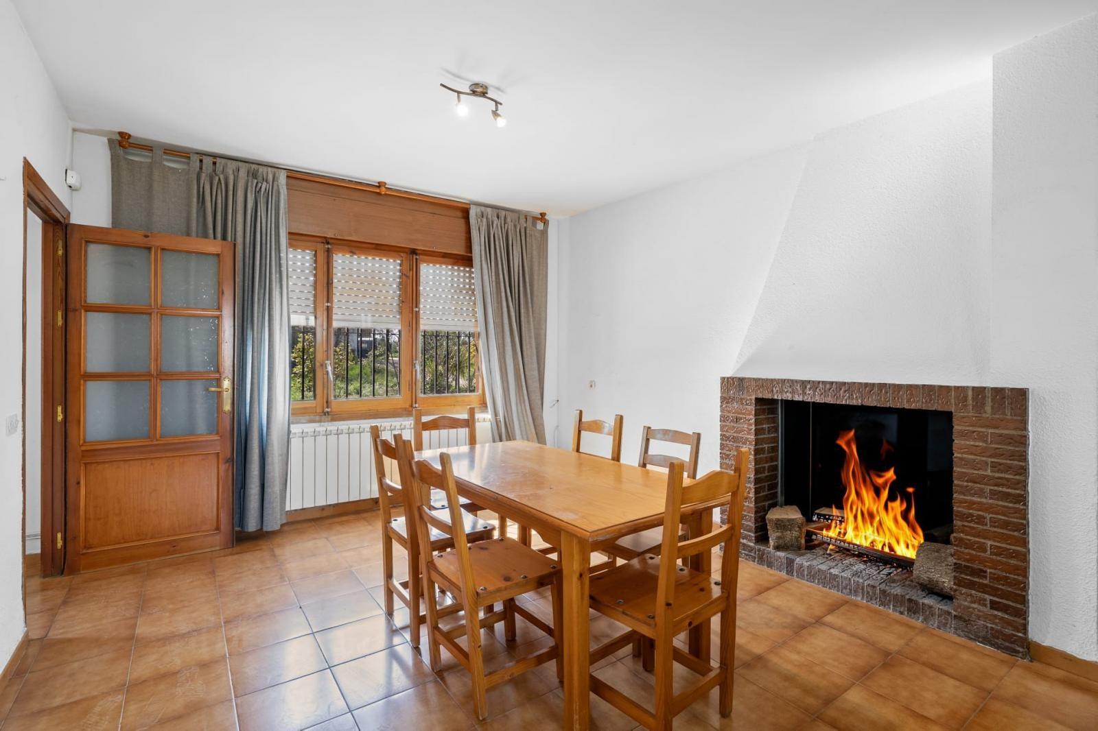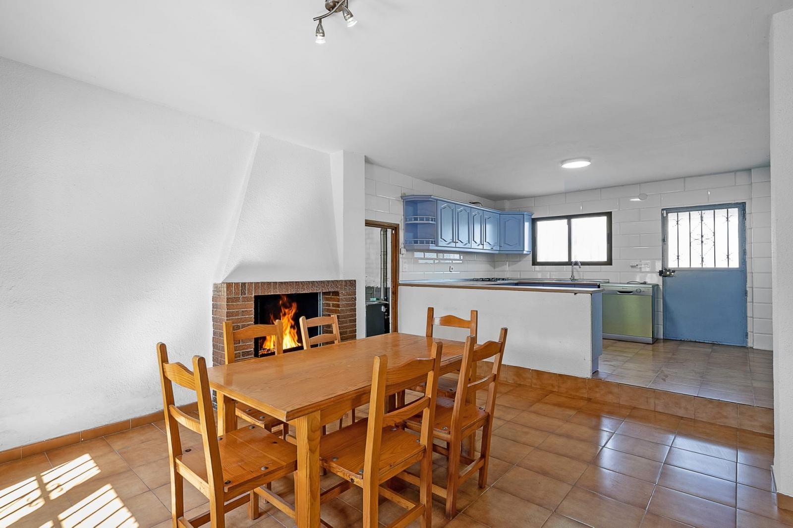 En la planta principal se encuentra una cocina independiente equipada con electrodomésticos y con despensa, un amplio salón-comedor con chimenea que aporta calidez y carácter, y dos baños completos: uno con plato de ducha y otro con bañera.