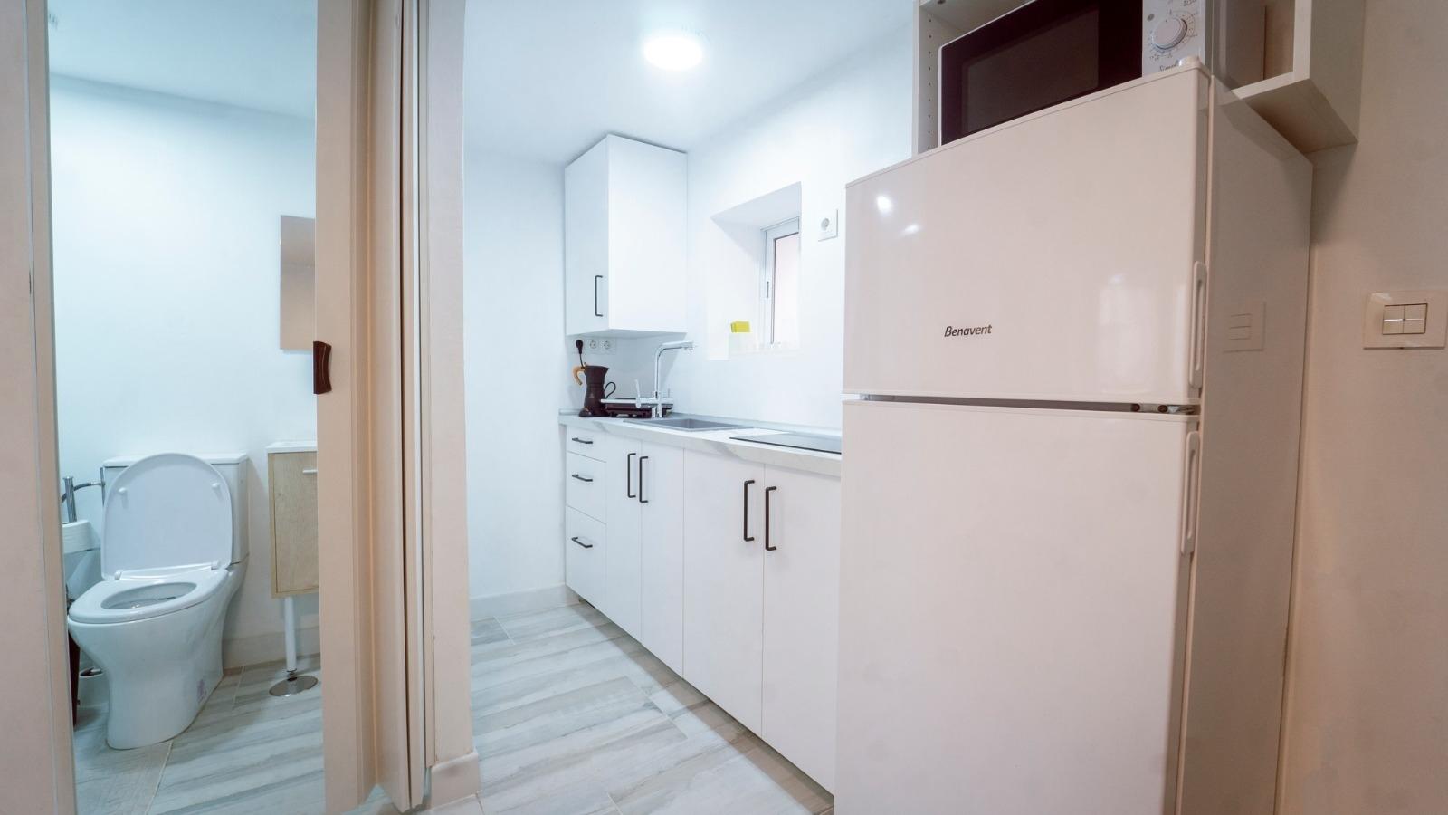 La vivienda se entrega amueblada y cuenta con una cocina americana equipada con electrodomésticos, integrada en un espacio práctico y bien aprovechado. El baño dispone de plato de ducha, ideal para el día a día.