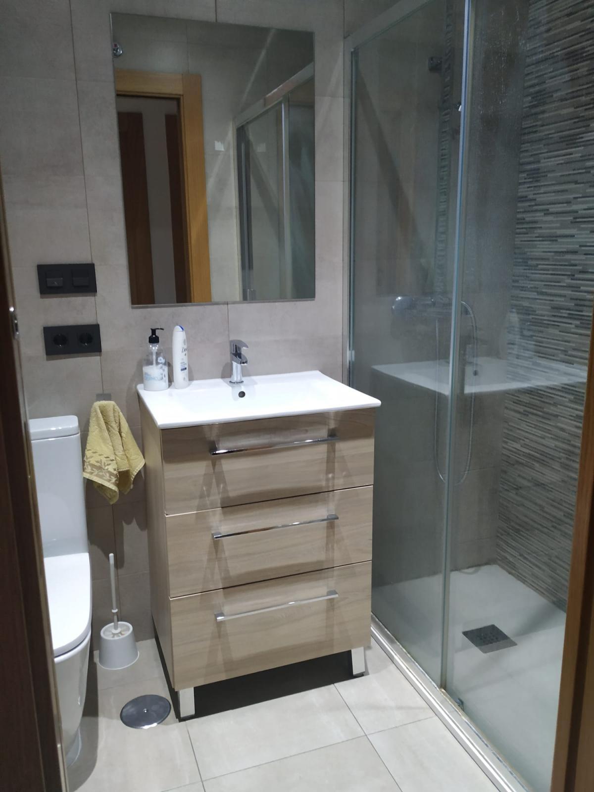 Dispone de un baño completo con plato de ducha. Entre sus calidades destacan el suelo de terrazo, carpintería exterior de PVC y bomba de frío-calor, garantizando confort en cualquier época del año.